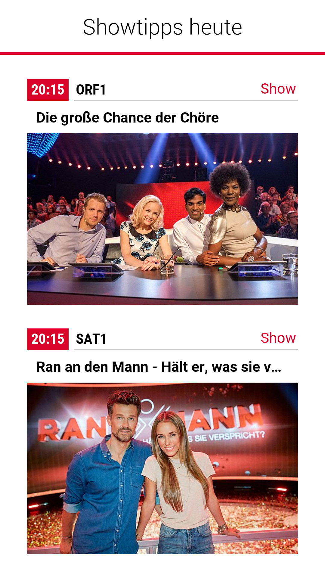 Die tvheute “tv now” App ist ab sofort und exklusiv im österreichischen Store verfügbar. Alle Sender, Sendungen und Tageshighlights sind damit genau auf die heimischen TV-Zuseher zugeschnitten. Jetzt downloaden.